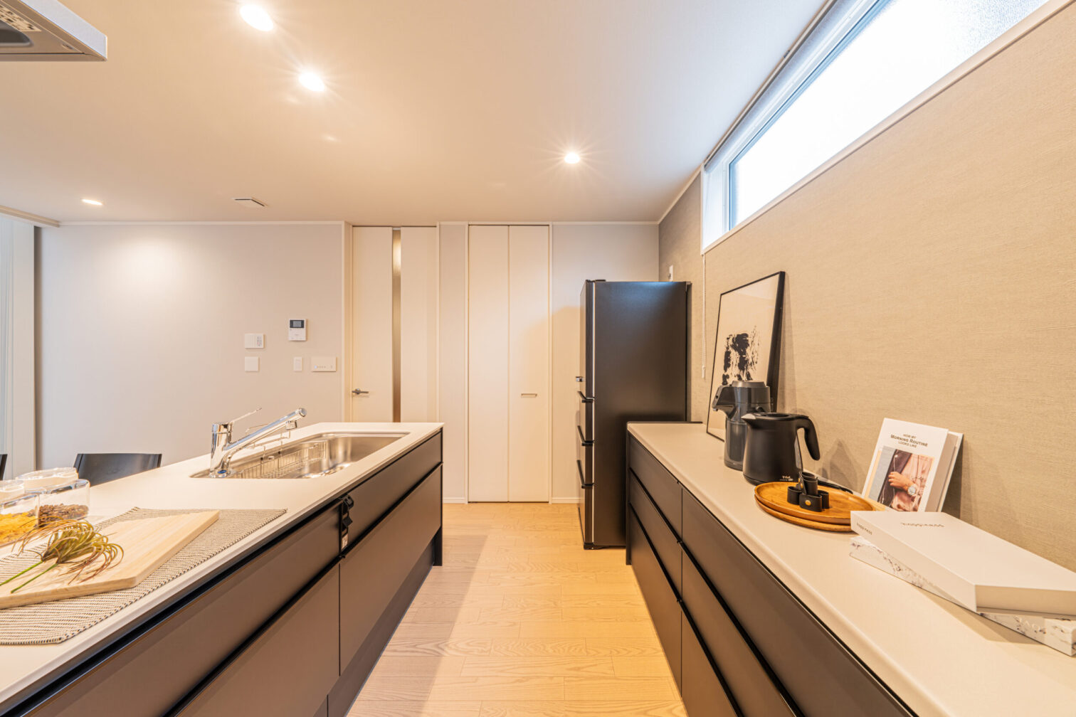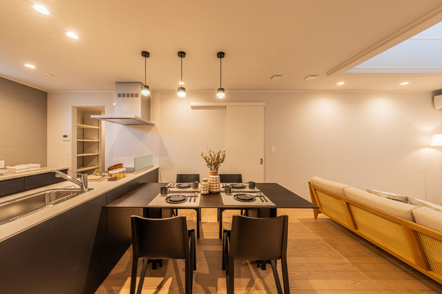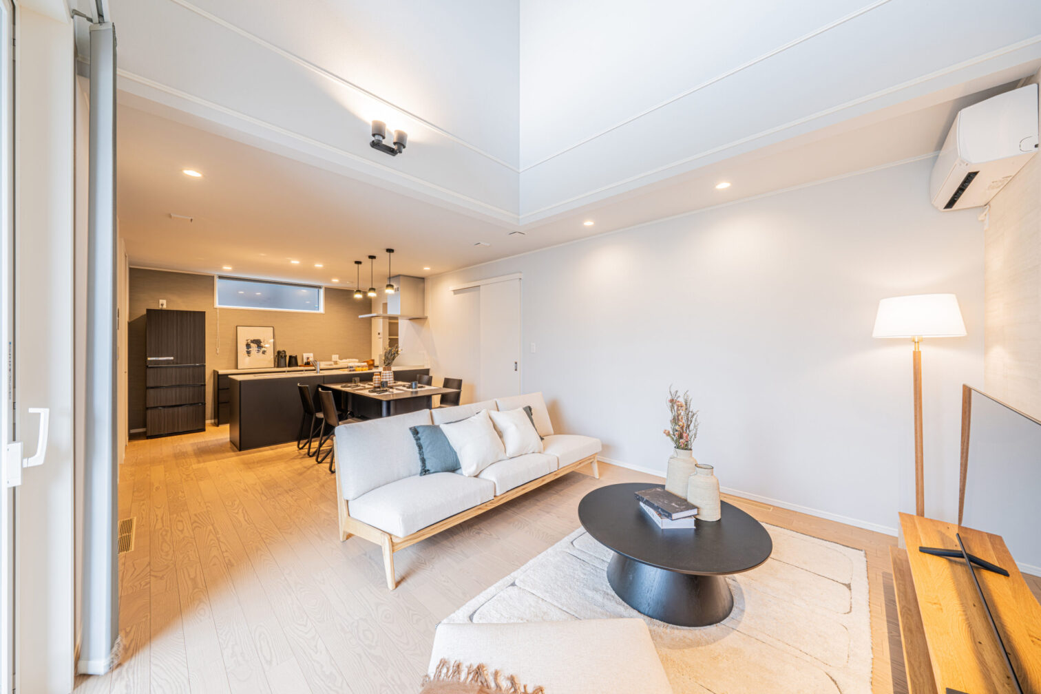 柔らかい印象を与える形状の家具と木の優しく暖かい雰囲気を感じる北欧スタイルと和の要素をミックスさせたトレンドスタイルであるジャパンディスタイル。そこにモノトーンの要素を追加したモダンジャンパンディスタイルをご提案いたします。家具の基本形状はラウンド形状で固め、ファブリックは明るいオフホワイトをメインに所々ブラックを入れることで締まりのある空間を演出します。またブラックと木、オフホワイトが混ざることで空間の”侘び寂び”や”静と動”を感じられるモデルとなります。