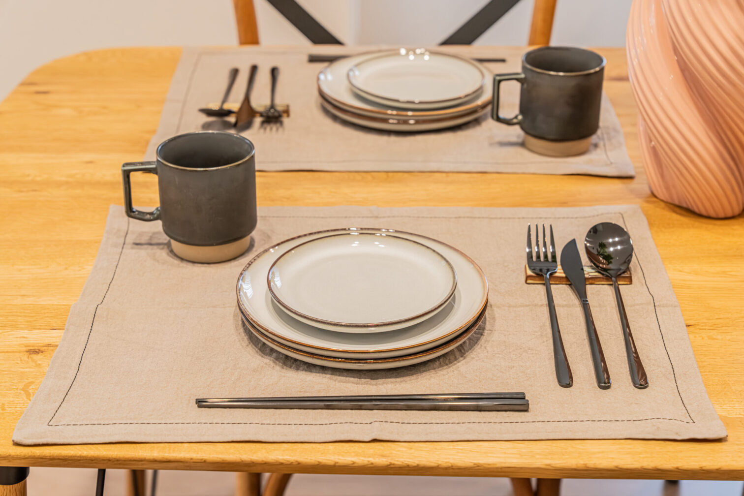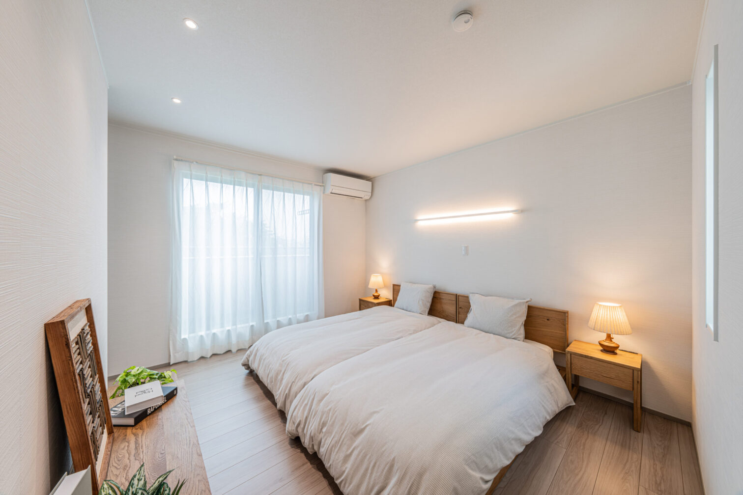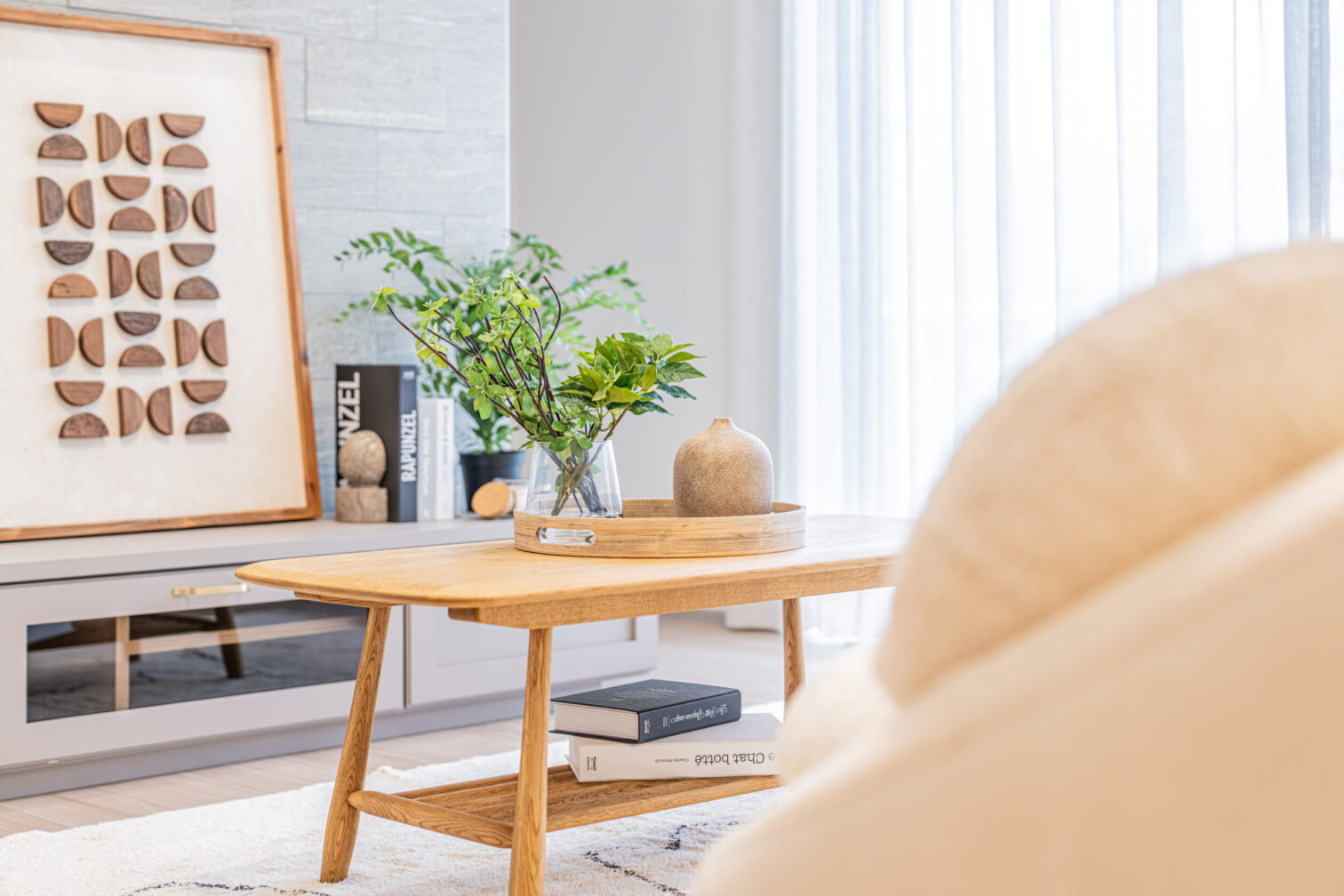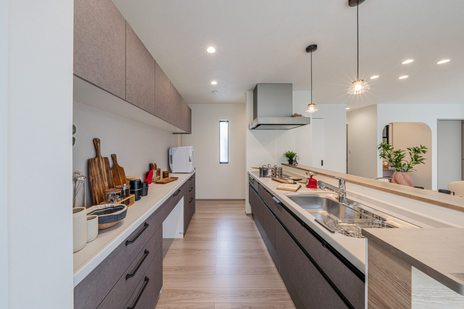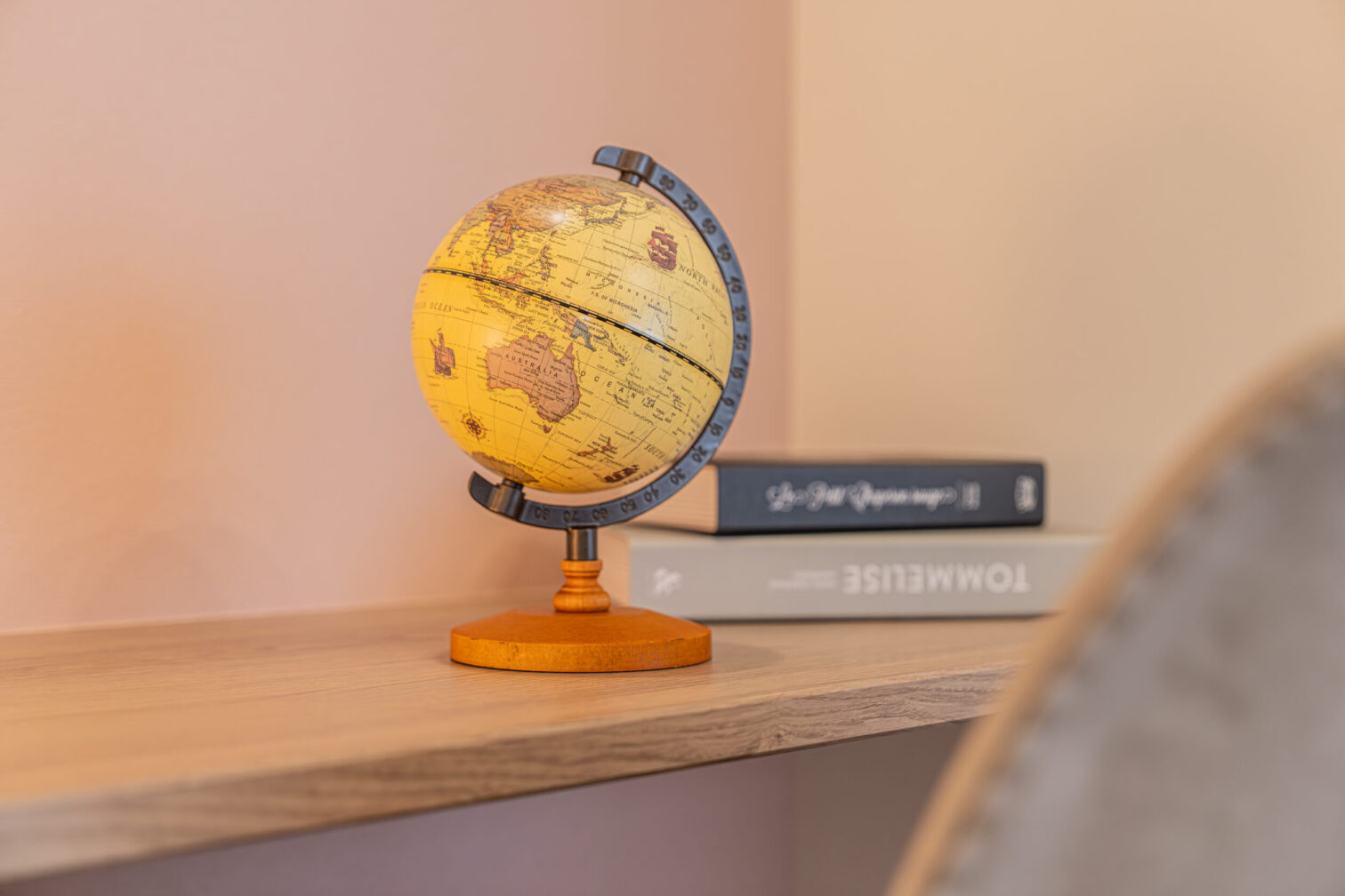 日々の生活を充実してもらうための空間作りを想定して家具をチョイスしました。少しモダンよりな内装ですが、そこをフレンチインテリア要素として捉え他空間作りをしており、ワークスペースのピンクのアクセントクロスを活かした家具の選定も行っております。